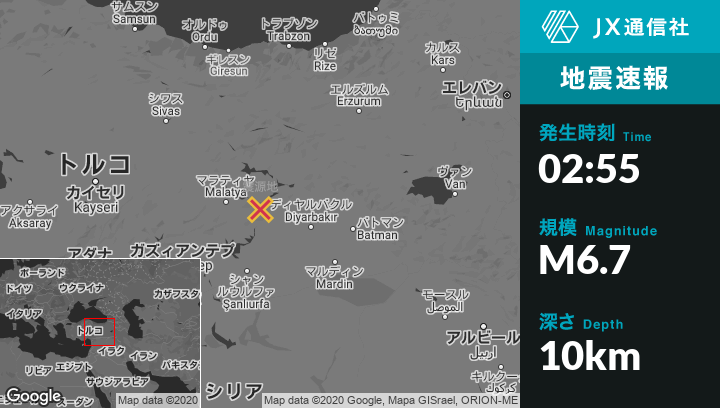 | 震源地 | トルコのDoganyolから東北東4kmの地点 |