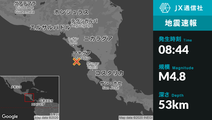 | 震源地 | ニカラグアのMasachapaから南南西47kmの地点 |