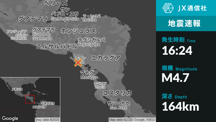 | 震源地 | ニカラグアのChinandegaから北東11kmの地点 |