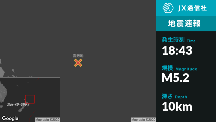 1月26日 18:43頃、ニュージーランドのOpotikiから北東373kmの地点でM5.2の地震がありました。
