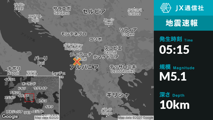 | 震源地 | アルバニアのVoreから北西12kmの地点 |