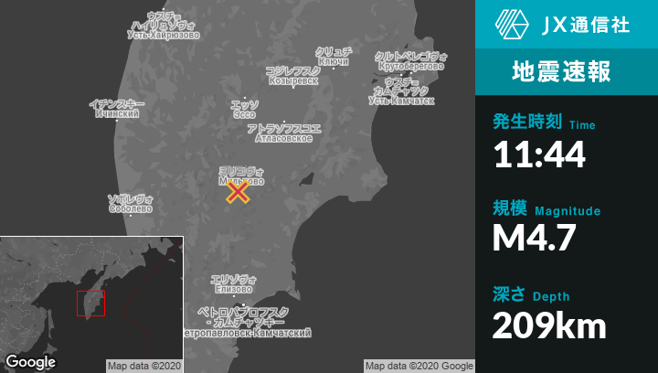 | 震源地 | ロシアのEssoから南135kmの地点 |