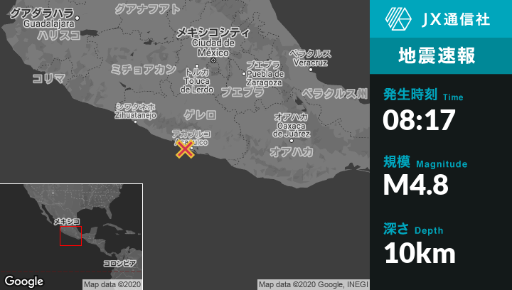 | 震源地 | メキシコのBajos del Ejidoから西5kmの地点 |
