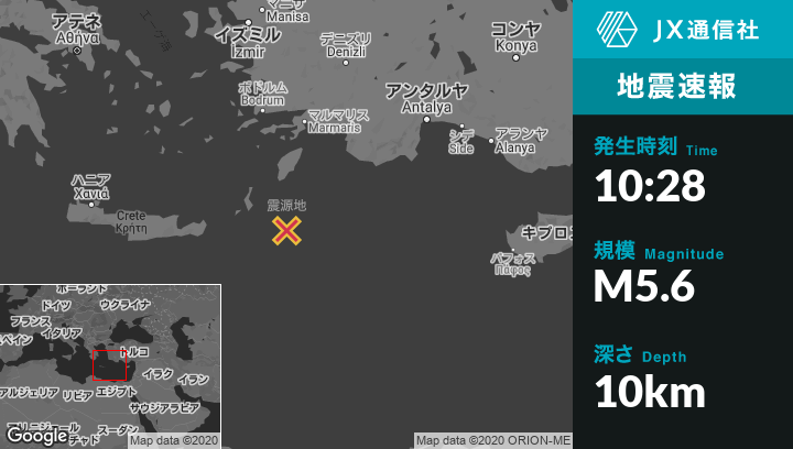 | 震源地 | ギリシャのKarpathosから東南東72kmの地点 |