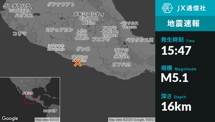 | 震源地 | メキシコのBajos del Ejidoから北北東6kmの地点 |