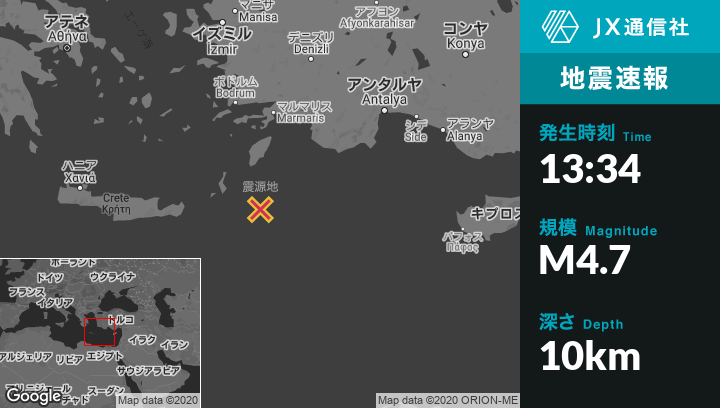 1月31日 13:34頃、ギリシャのKarpathosから東南東74kmの地点でM4.7の地震がありました。