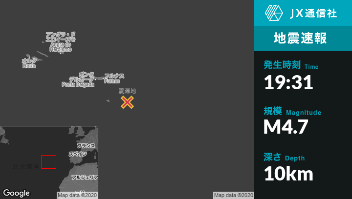 1月31日 19:31頃、ポルトガルのFurnasから南東127kmの地点でM4.7の地震がありました。
