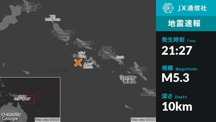 | 震源地 | ソロモン諸島のGizoから西南西39kmの地点 |