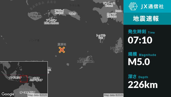 | 震源地 | インドネシアのSaumlakiから北西290kmの地点 |