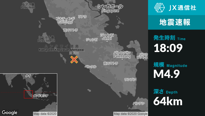 | 震源地 | インドネシアのSungaipenuhから南南西96kmの地点 |