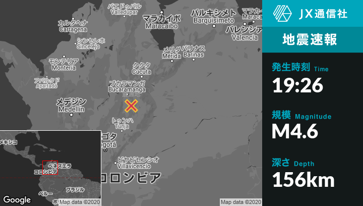 | 震源地 | コロンビアのSan Andresから西南西11kmの地点 |