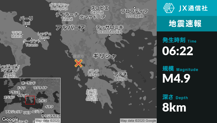| 震源地 | ギリシャのNeos Oroposから西7kmの地点 |