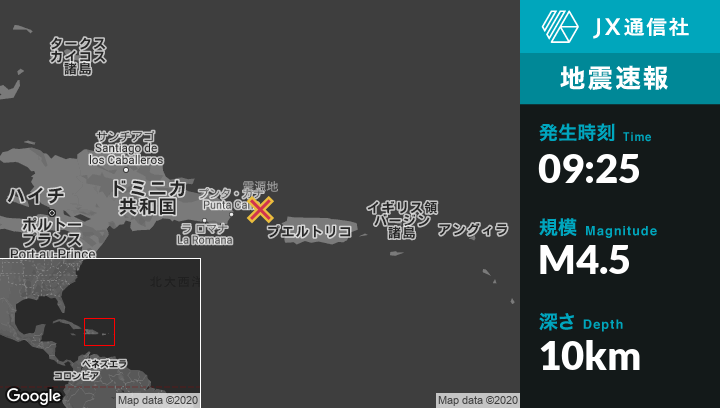 | 震源地 | プエルトリコのRinconから北西71kmの地点 |