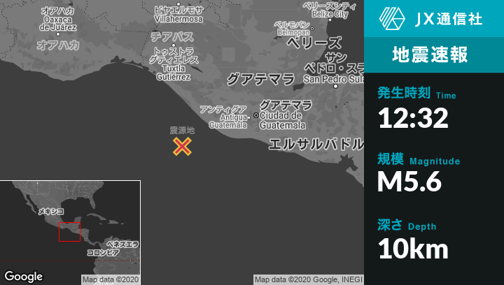 | 震源地 | グアテマラのOcosから南西104kmの地点 |