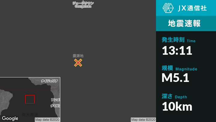 | 震源地 | セントヘレナのGeorgetownから南482kmの地点 |