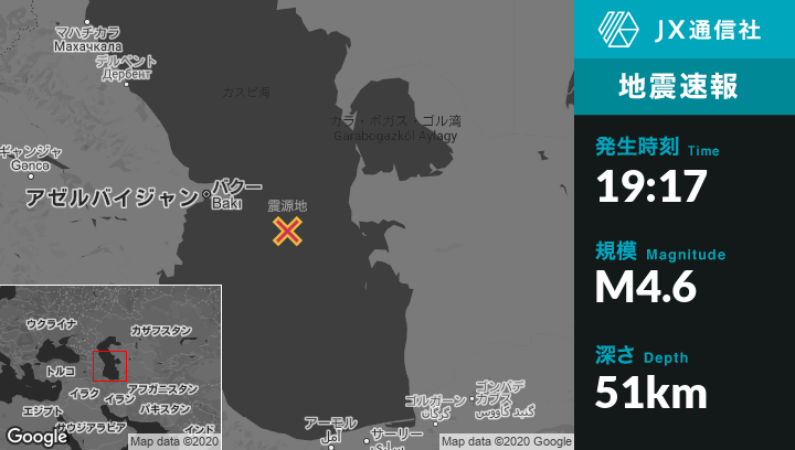 | 震源地 | アゼルバイジャンのZyryaから東南東111kmの地点 |