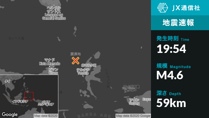 | 震源地 | インドネシアのTobeloから西北西137kmの地点 |