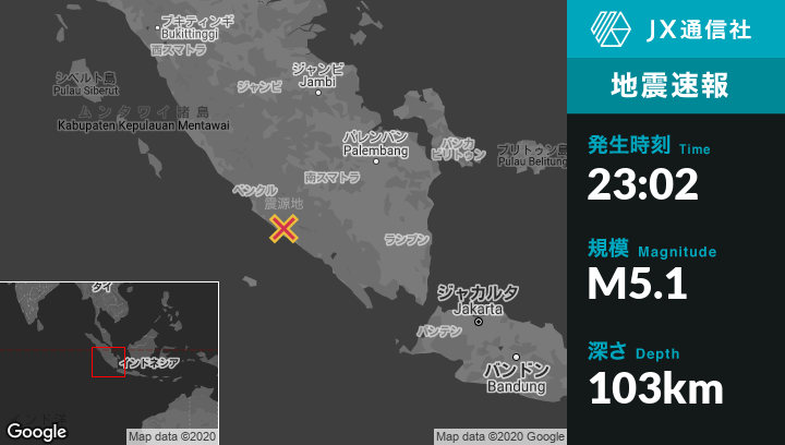 | 震源地 | インドネシアのPagaralamから西南西43kmの地点 |