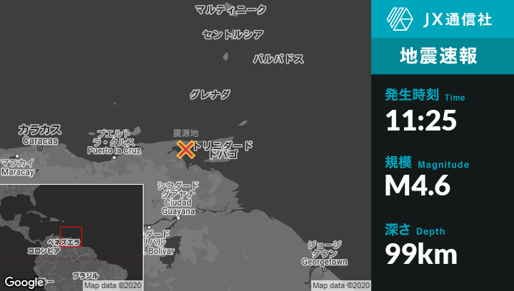 | 震源地 | ベネズエラのGueiriaから西12kmの地点 |