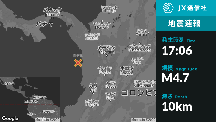 | 震源地 | コロンビアのNuquiから西北西43kmの地点 |