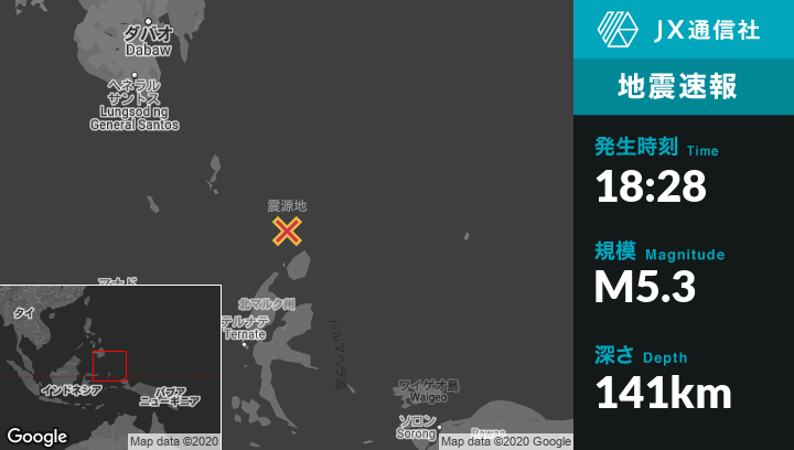 | 震源地 | インドネシアのTobeloから北158kmの地点 |