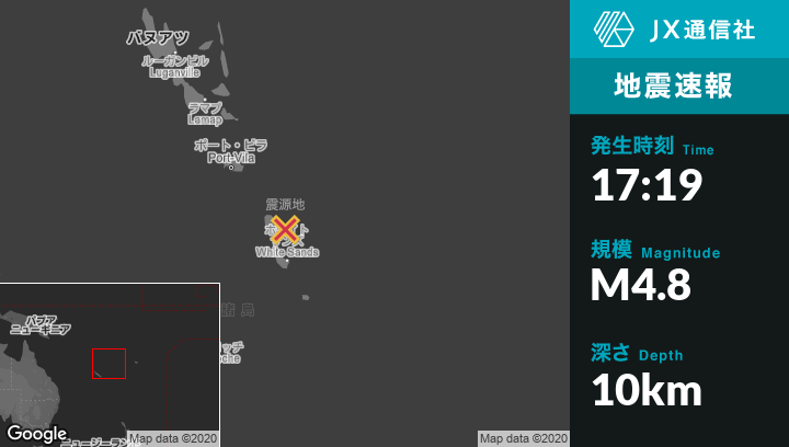 | 震源地 | バヌアツのIsangelから北85kmの地点 |