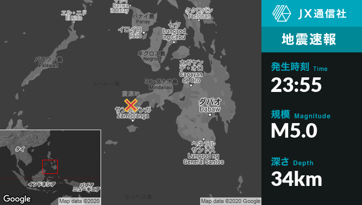 | 震源地 | フィリピンのSioconから西16kmの地点 |