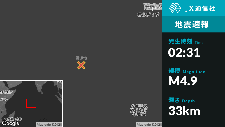 | 震源地 | イギリス領インド洋地域のDiego Garciaから北西575kmの地点 |