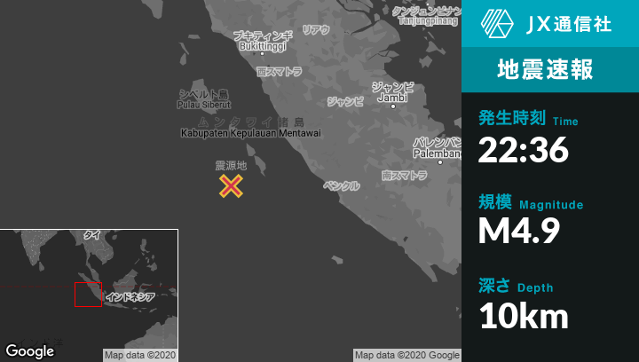 | 震源地 | インドネシアのMuara Siberutから南南東209kmの地点 |