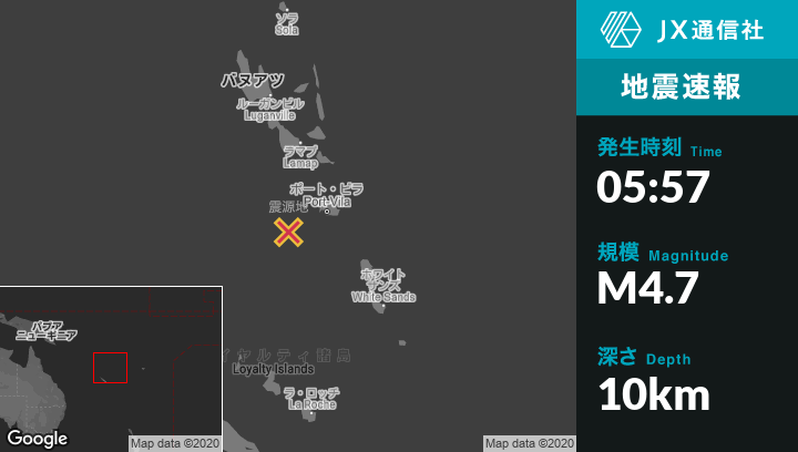| 震源地 | バヌアツのPort-Vilaから西南西85kmの地点 |