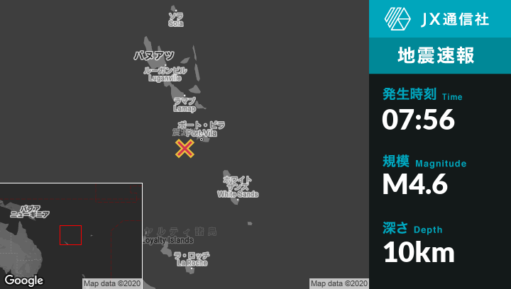| 震源地 | バヌアツのPort-Vilaから西南西56kmの地点 |