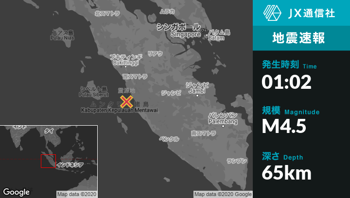 | 震源地 | インドネシアのPainanから南南西49kmの地点 |