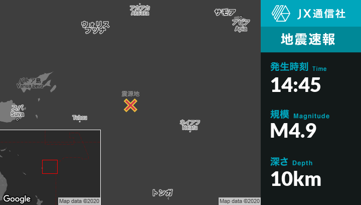 | 震源地 | トンガのNeiafuから西北西307kmの地点 |
