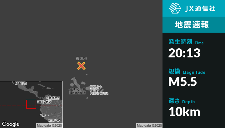 | 震源地 | エクアドルのPuerto Ayoraから北北西209kmの地点 |