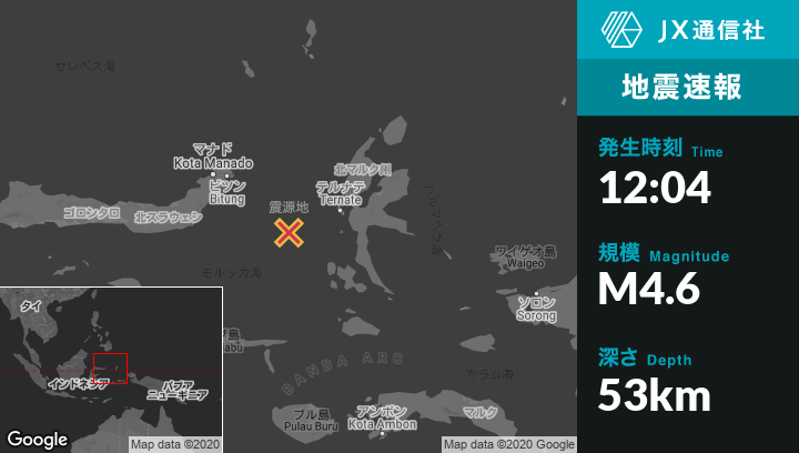 | 震源地 | インドネシアのKota Ternateから西南西120kmの地点 |
