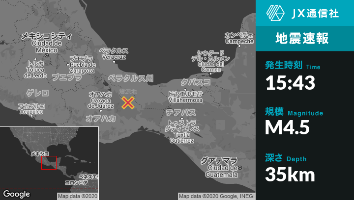 | 震源地 | メキシコのPlaya Vicenteから南東44kmの地点 |