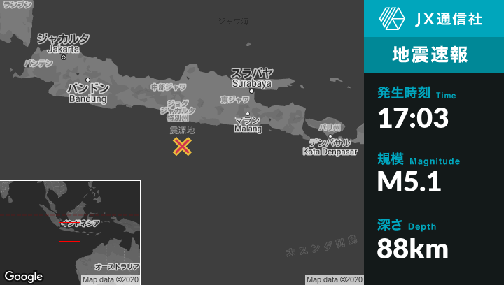 | 震源地 | インドネシアのWonosariから南99kmの地点 |