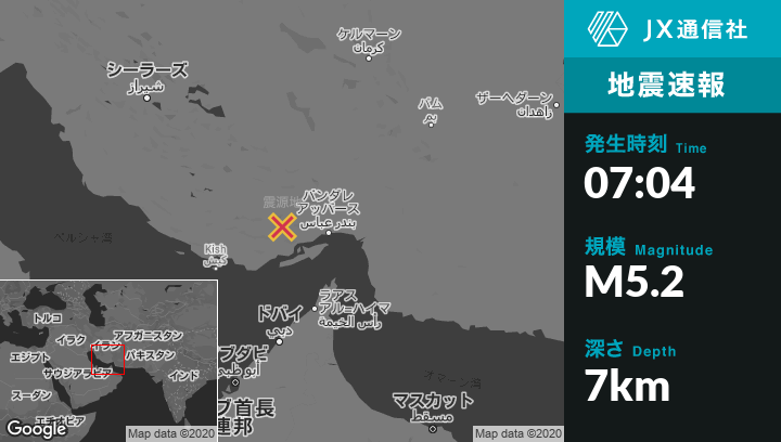 | 震源地 | イランのBandar 'Abbasから西北西96kmの地点 |