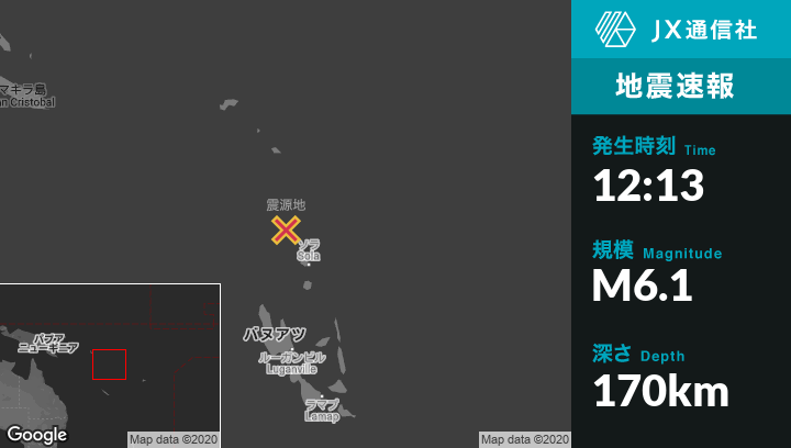 | 震源地 | バヌアツのSolaから北北西101kmの地点 |