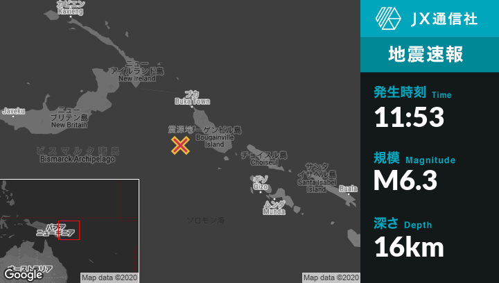 | 震源地 | パプアニューギニアのPangunaから西132kmの地点 |