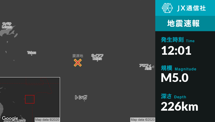 | 震源地 | トンガのNeiafuから西152kmの地点 |