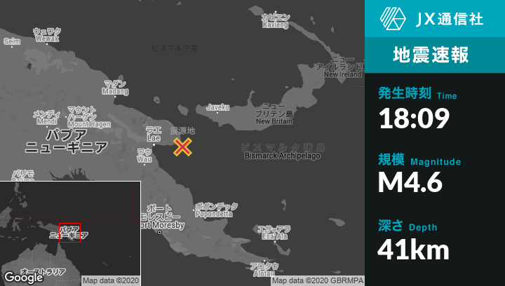 | 震源地 | パプアニューギニアのFinschhafenから南南東9kmの地点 |