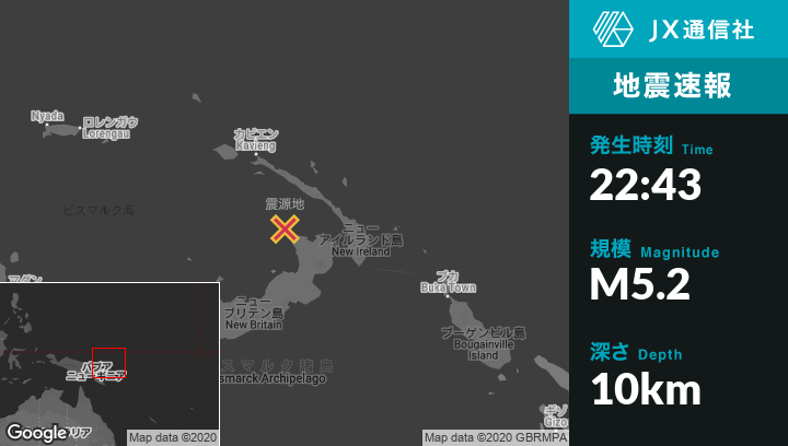 | 震源地 | パプアニューギニアのRabaulから西北西92kmの地点 |