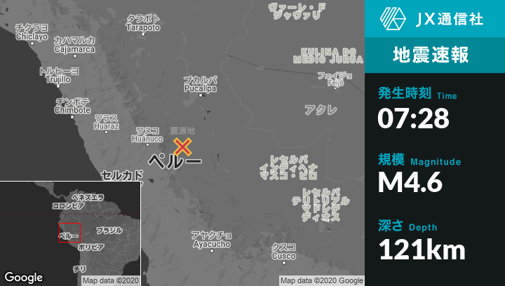 | 震源地 | ペルーのOxapampaから北北東83kmの地点 |