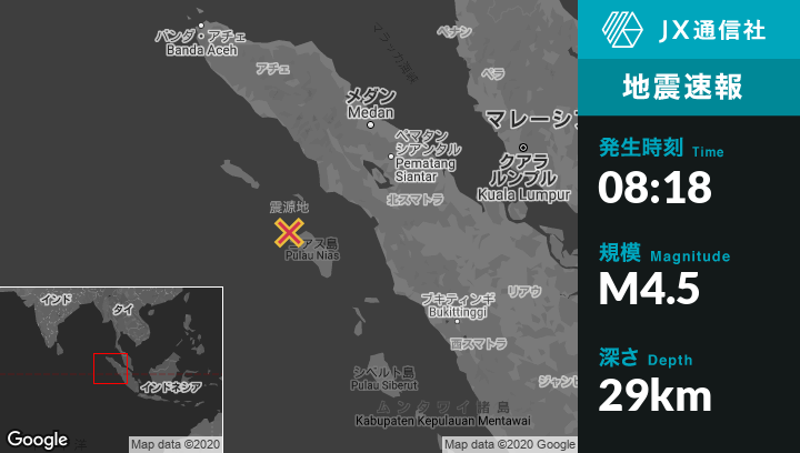 | 震源地 | インドネシアのSinabangから南東124kmの地点 |