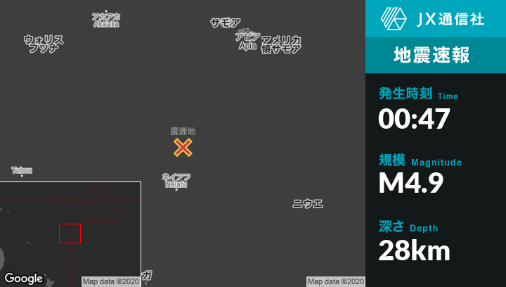 4月30日 00:47頃、トンガのHihifoから南146kmの地点でM4.9の地震がありました。