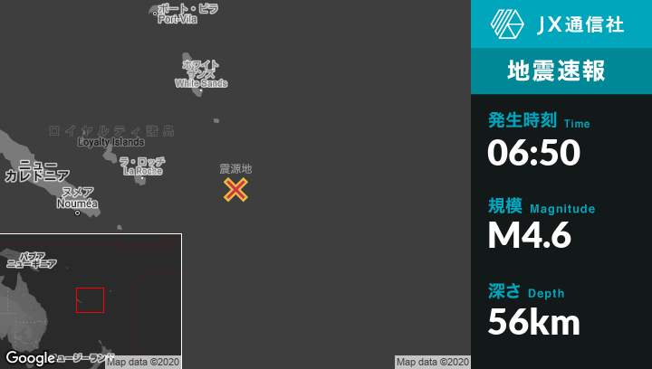 | 震源地 | ニューカレドニアのIle Hunterから西北西199kmの地点 |