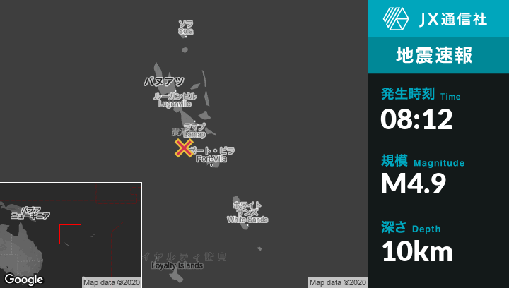 | 震源地 | バヌアツのLakatoroから南107kmの地点 |