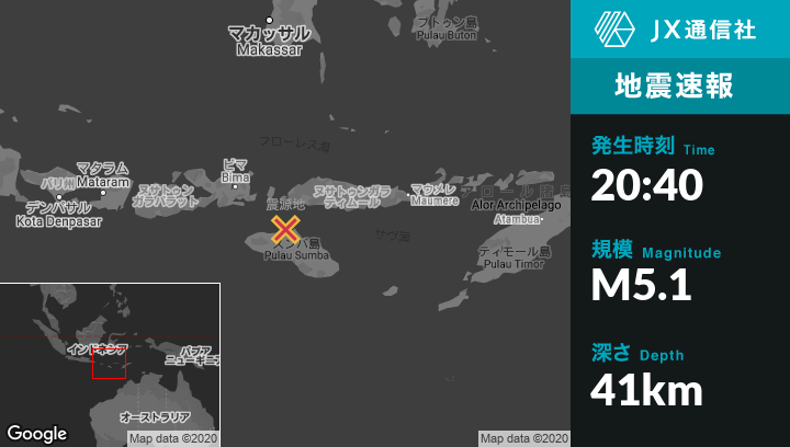 | 震源地 | インドネシアのKomodoから南南東73kmの地点 |