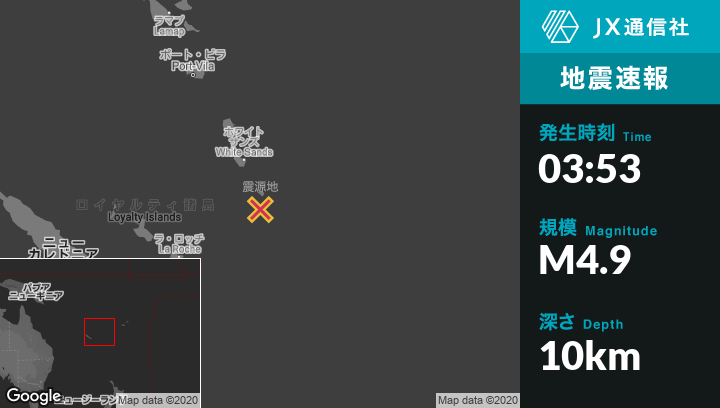| 震源地 | バヌアツのIsangelから南南東110kmの地点 |
